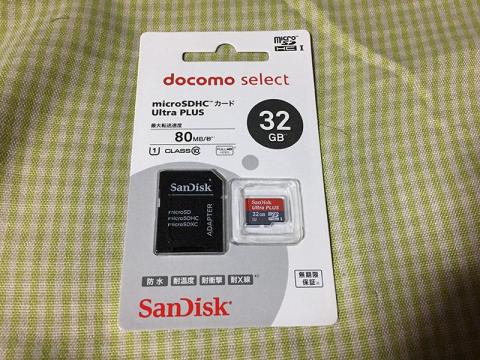 年明け頃からフラッシュメモリー製品の価格が随分上がり、microSDHC 32GB Class10 UHS-1というグレードのものでメジャーブランドの製品を千円未満で買うことがかなり難しくなってきました。今すぐにストックが尽きるというほど切迫していたわけではないのですが、どのみちmicroSDカードは必要となるものですので、ちょっと安かったものを確保しておきました。主にドコモショップで携帯電話向けオプションとして売られているdocomo selectパッケージの品ですが、中身はごく普通のSanDisk純正品と思われます。