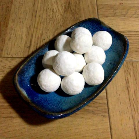 真っ白な粉糖をまぶした、サックリほろほろ食感のボール状のクッキーです。