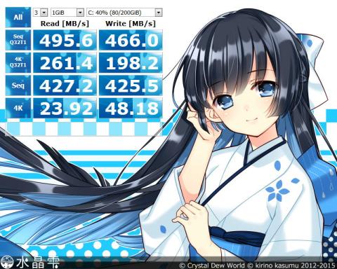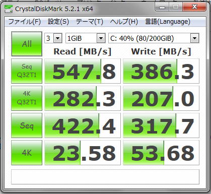 通常バージョンのも載せておきます。4Kに弱さがあるようですね。Readに547.8でていれば、パッケージでReadMax520MB/s謳っているので実力以上でしょう。