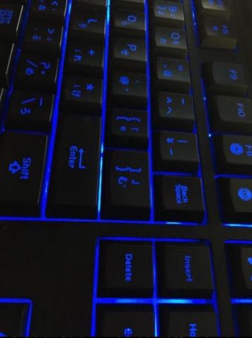 これはPCデポでデモ機が置いてあって、赤と青と紫のLEDの切り替えがあり、光もフェードインフェードアウトが出来てかわいいゲーミングキーボードだったので一目ぼれしてしまいました。
