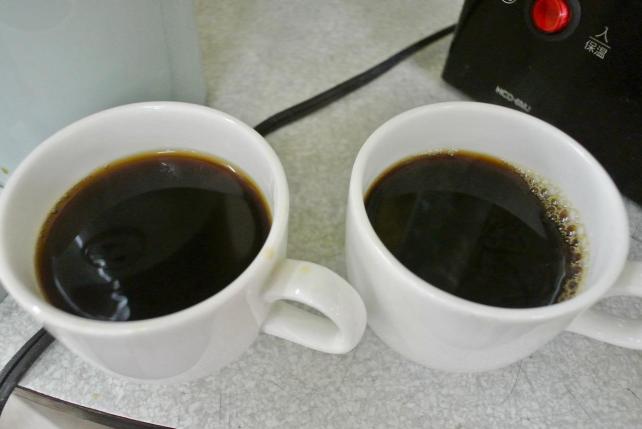 向かって右がToffy K-CM2-PAで淹れたコーヒーカップの様子です