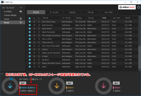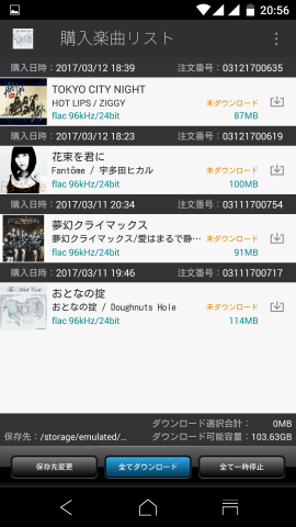 ・e-onkyoで購入した音楽は標準プレイヤー、HF Player、Webでダウンロードできるが、どれか一つにしないと重複して表示される。