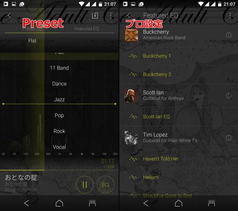 GRANBEAT DP-CMX1のMusicアプリは全体的自然な音なので重低音も強くはありませんが、どうしても重低音を強めたい場合に導入しましょう。Musicアプリのイコライザーに対して重畳効果があります。