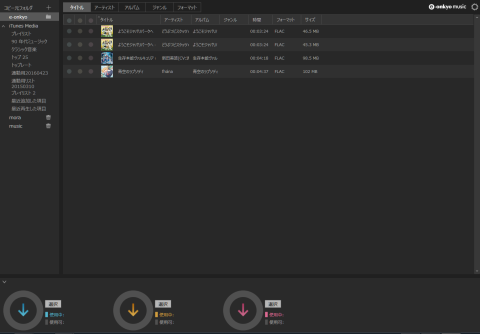 e-onkyoにてハイレゾ音源を購入したので、そのフォルダがitunesなどとは別に登録されています。