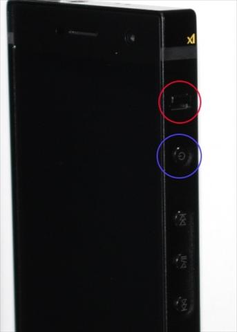 そして、その上にある、電源ボタン(青丸)と更に上にあるHOLDスイッチ(赤丸)。
