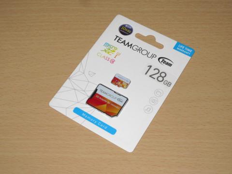 Team製のmicroSDXC 128GB”Team Micro SDXC UHS-1 COLOR CARDシリーズ 10年保証(128GB) ”。最近同じ銘柄の製品を購入したので、以前の製品と比較しようとして確認してみると、もちもの登録し忘れてていたので登録しました(^-^;