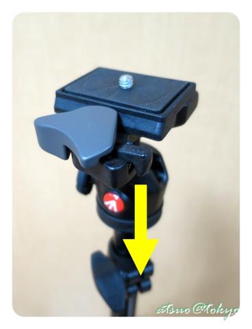「befree」等他の三脚だとセンターポールが更に沈み最低高がもっと低くなるのですが、「befree one」はその機構を付けない事でより格納高を短くしたのだと思われます。