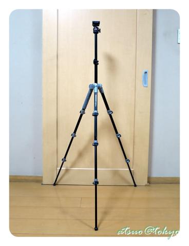 そしてこちらが脚を一段狭めた状態でセンターポールを延ばした、全伸高の状態になります。