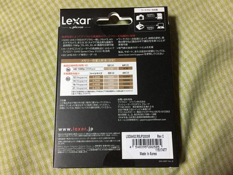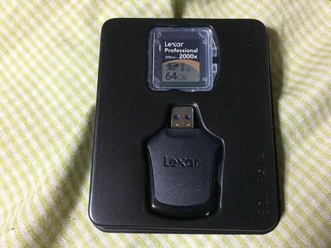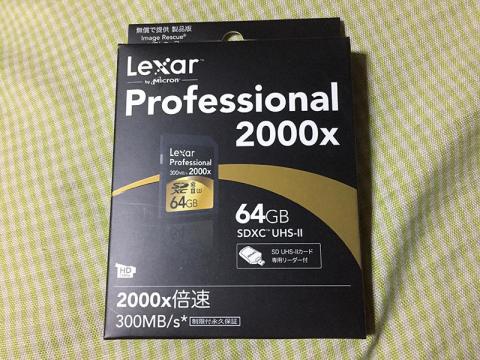 部屋からいくつか未開封のSDメモリーカードを発掘して、特に新たなカードが必要というわけでもなかったのですが、異様な安さに惹かれて買ってしまったのが、このLexar Professional 2000x 64GBモデル、LSD64GCRBJP2000Rです。UHS-II対応の高速型SDXC64GBメモリーカードと、UHS-IIをサポートしたSDメモリーカードリーダー・ライターのセット品となります。