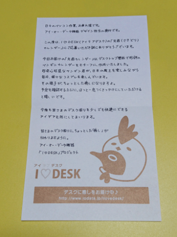 アイ・オー・データの「I♡DESK」のプレゼント企画の第2弾(第3弾?)。