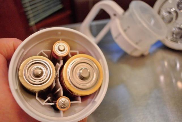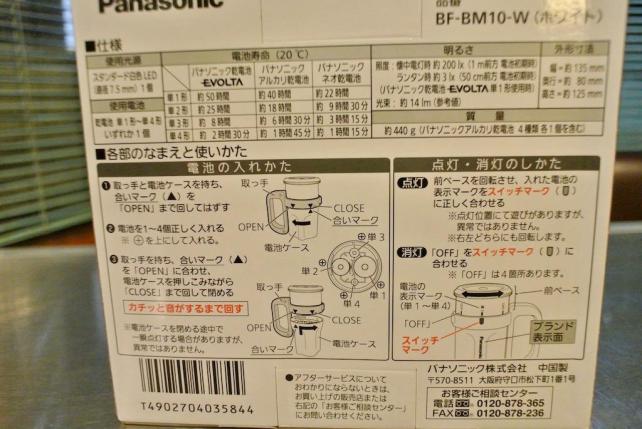 この製品も、ほぼ同価格帯のパナソニック製品ですが、光源になるLEDが4個装備されており単1電池を4本使う設計です。