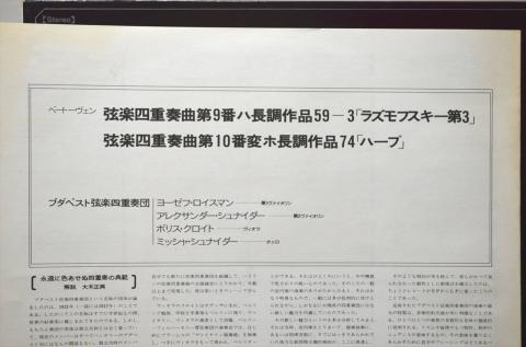 レコードは昭和49年(1974) 6月21日発売(ライナー記載から)ですがブダペスト弦楽4重奏団は1968年に解散しています レコードのカッターマシンはノイマン社SX-74です