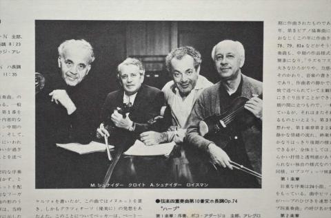 ブダペスト弦楽4重奏団ですが構成員はロシア出身者でドイツで楽曲を学んだ人です 1921年誕生した楽団ですがハンガリーとは関係ありません 創立当時はハンガリー王立歌劇場管弦楽団の構成員で占められましたがその後ロシア人となりました 1968年解散しています 第一ヴァイオリン、第二バイオリン、ヴィオラ、チェロの楽器構成です。