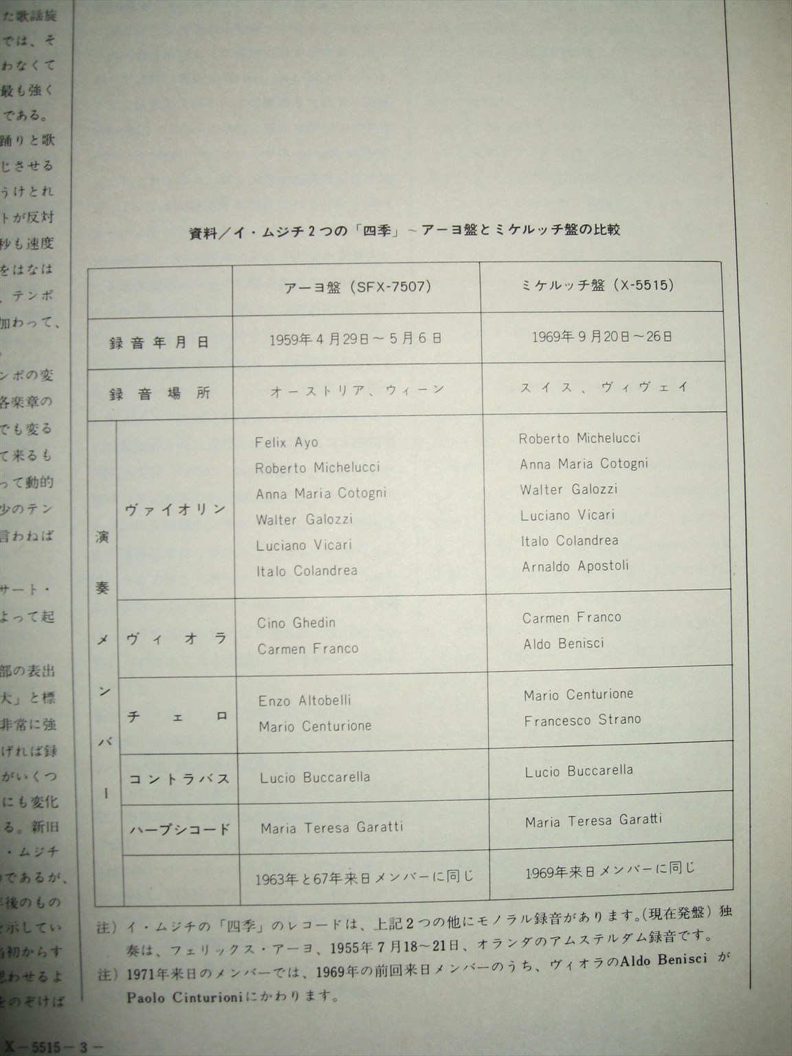 ミケルッティのLPも当時売れたと思います クラシックというと「四季」でしたから, イ・ムジチは何度も日本に来ています クアトロってイタリア語なんですね クアトロ・ステージかな...