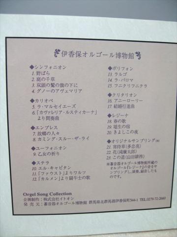 伊香保オルゴール博物館は群馬県伊香保のホテル小暮関連の施設だったと思います 今はオルゴール博物館は辞めてしまったようですが、竹久夢二伊香保記念館と同じだと思います 伊香保温泉に行ったときにオルゴール博物館(入場料有料)に寄り購入したオルゴール再生音CDです 当時のオルゴール博物館所蔵のオルゴールを動作させて録音したソースでCDを作ったものと記憶しています 雑音が入るので深夜に録音技師が録音したそうです(道路の傍と言うのもありますが)