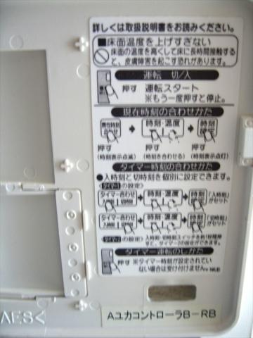 ので, その時の時間設定や温度を設定するコントローラーです マンション購入時に付属していたものでオプションで全室床暖房も可能でしたが金欠病で無理でした 自室は電気ストーブで我慢してます(というか充分)マンションは2重サッシ、断熱材効果などで暖かいので狭い部屋ではそれ程の熱量は必要ないです(関東という限定ですが)他所は判りませんが。