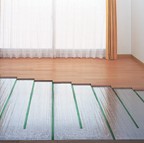 施工例 フローリング下に暖房パネル(シート)を貼ります このパネル中を温水が循環します