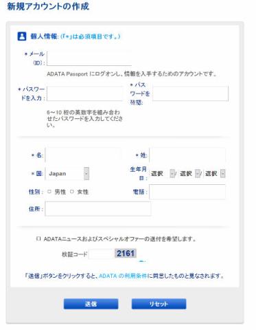 各項目を入力して、下に有る「送信」ボタンをクリックします。