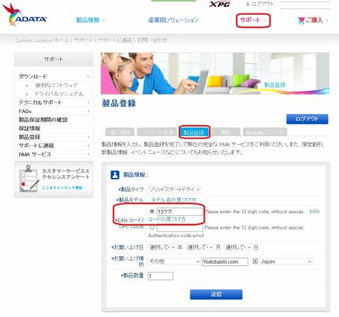 ここで判りにくいのが「*EAN コード/UPC CODE」ですが、パッケージの裏にある2次元バーコードが縦に並んでいますが、その間に有る13桁のコードになります、「コードの見つけ方」をクリックすると、ポップアップで場所が表示されます。