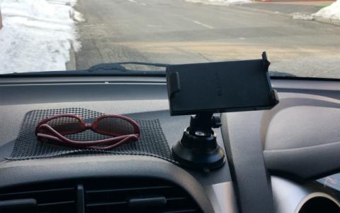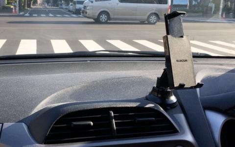 ゲル状の吸盤で、車のダッシュボードの平らな所ならどこにでも設置出来ます。