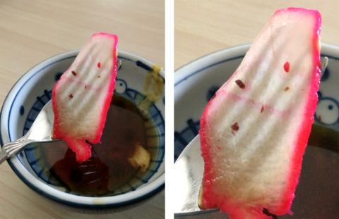 今日は、酢、醤油、芥子で作った自家製タレでいただきました。