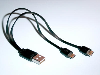 Type-A側は1つで、2つのイヤホンに同時充電出来るようにMicro-Bが2つ。