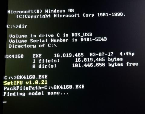 DOSファイル仕様だとファイル名は8文字までの制限があるので、あらかじめ "X370GK4160.exe" のファイル名を "GK4160.exe" 辺りにリネームしといた方が吉かも。日本語キーボードだと "~" が入力できないので。英語キーボード持ちなら大丈夫かも。