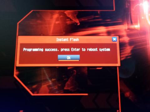 DOS画面で " Set Varible Successfully!! " という文字が出ても慌ててUSBメモリをこの段階で引っこ抜いてはいけません。何かキーを押して再起動後がBIOS Updateの本番です。