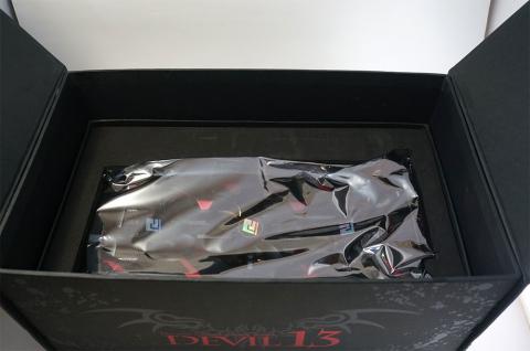 ついに悪魔本体が見える。がっちりとした緩衝材にハマっているうえに2kgを超える重量の悪魔を出すのは一苦労だ。