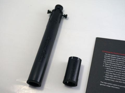 封印を解くと使い魔のウロボロスが控える。レシーバーを兼ねた充電スタンドやら組み換えパーツが豪華。Razerのパッケージ内容をそのまま移植したようで説明書やステッカーもばっちり付属。
