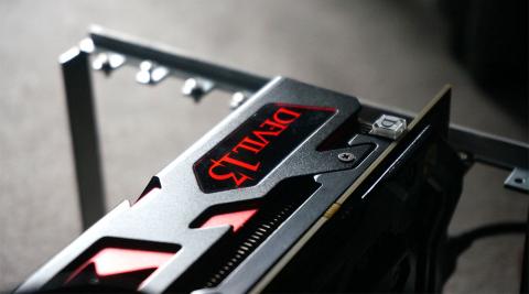 PowerColorのDevil13シリーズ。デュアルGPUを搭載したモンスターに与えられるシリーズ名で、これはR9 390を2基搭載している。