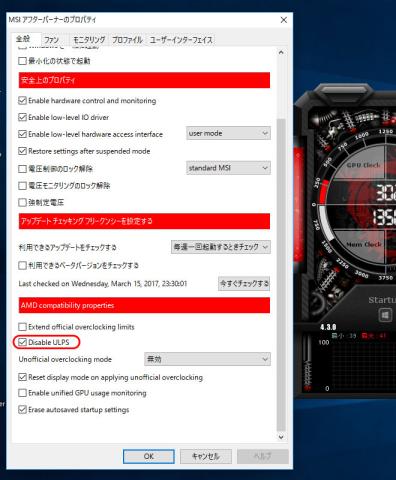 しかしReLive以前のドライバでもこれが起きることがある。で、追加で試したのがULPSを無効化する事。ULPSというのは画面出力の無いカードを休止状態にすることでアイドル消費を大幅に抑える機能で、複数枚クロスファイアでセカンダリVGAのファンが止まったりするのがそれ。