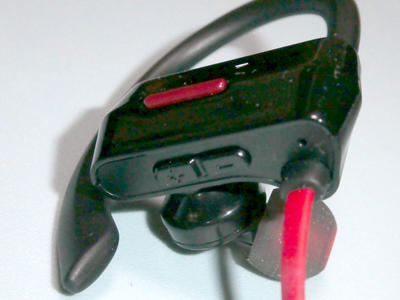 電源ボタンを兼ねるマルチファンクションボタンが右耳の側面についているため、装着した状態で電源のOn/Offや再生・停止しようとすると、イヤホンを耳に押し付ける感じになるのが唯一の欠点ですね。
