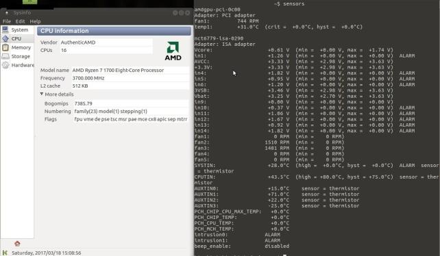 さて皆さん気になるはずの肝心のCPU温度ですが、OSをUbuntu MATE 17.04 α2にしてしまったため、Ryzen Masterも使えないし、センサーモニタリングソフトもまだRyzen CPU温度を拾うことはできないので現状では詳しくお知らせする事ができません。ごめん。