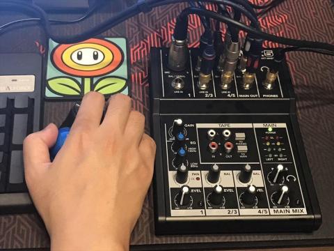 「Mackie Mix5」はそのコンパクトさと値段から想像できないほど高品質。特にマイク入力は驚くほど低ノイズ。ゲインをMaxまで上げても、ホワイトノイズをほとんど感じられないほどであった。ゲーム機・パソコンからの入力のほうは、機器からのアナログ出力をそのままミキサーに入れると、どちらともハムノイズが酷くてとてもじゃないが使い物にならなかったところを、デジタル出力がある(ゲーム機:HDMI音声、パソコン:光デジタル出力)ので、そっちからDACでアナログに変換してミキサーに入力した。