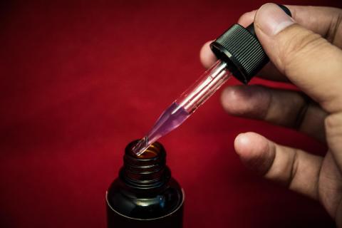 届いたその日に封を開け、しばらく眺める。ボトルのキャップがスポイド一体型になっており、これで中身の液体を必要な分だけ手に取る。見たこともないような透き通った紫色の液体はアメジストのように美しく、とてつもない濃度をしているのが明らかにわかるほど。