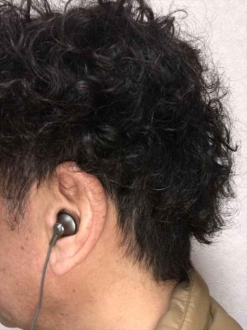 耳穴に入れるタイプではなく、耳に引っ掛けて使います。下からの力には強いですが、横からの力には弱く、スルッと抜けます。