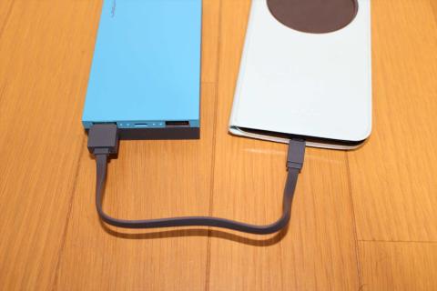 付属のケーブルはきしめんタイプの短いものです。持ち歩きにはちょうど良い長さです。