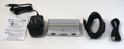 セルフパワー・バスパワー兼用でACアダプタが付属。カードリーダー部もしっかり3.0動作でSDXCに対応。本体背面には電源スイッチも装備している。