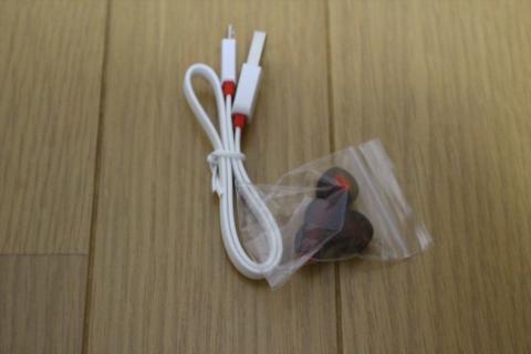 充電用のMicroUSB-USBケーブルが1本、交換用のイヤーパッドも付属しています。