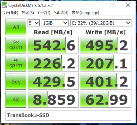 4KのRandomReadが遅い気もしますが、SATA接続なのでPCIe接続よりは遅いですが、