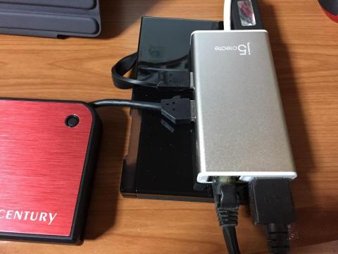 USBポートが高い位置にあるのでケーブルの短いUSB-HDDなどではぶら下がってしまいそうです。