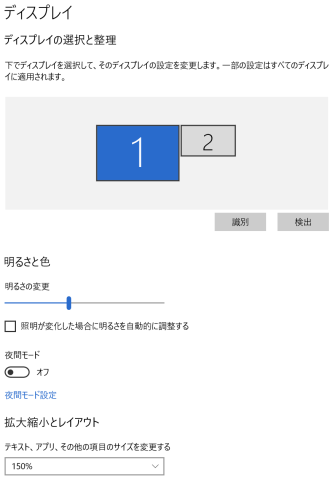このPCだとディスプレイの解像度が高くスケーリング150%で使用しているので外付けディスプレイ