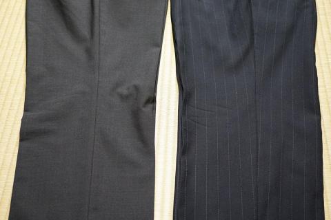 そこで先程伸縮率を比較したスーツと、数日おいてみて皺の残り方を比較してみました。差が見やすかったスラックスを並べてみましょう。