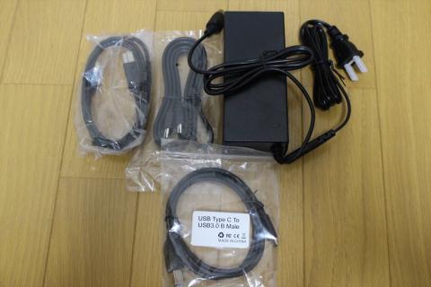 DCアダプタ、USB3.0ケーブル、eSATAケーブルの他に、Type-Cケーブルが付属しています。最近のPCでは、Type-C搭載製品も増えたので、そちらに接続して使うと良いでしょう。ただしUSB3.1接続ではなく、あくまでも接続はUSB3.0の転送速度になります。
