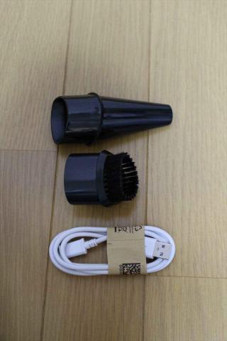 隙間ノズル、ブラシノズル、充電用のMicroUSB-USBケーブルが1本付属しています。