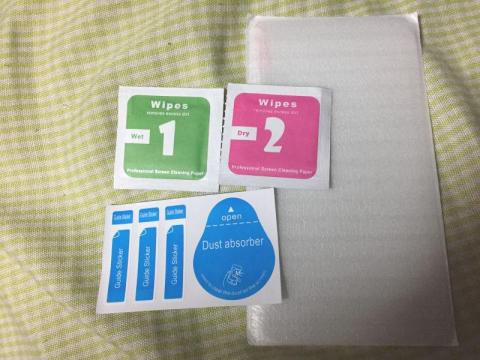 これがパッケージの中身ですが、クリーニングシートがドライ・ウェットなど、意外と細かく付属品が用意されています。