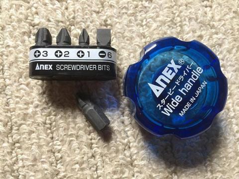 最初考えたのは、ごく普通の柄が短いドライバーを1本買うことです。これはVessel製のもので300円程度で買えます。