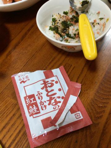 それにしても、我が家の子供(続柄的には”孫”)たちは「おとなのふりかけ 紅鮭」が好きです。