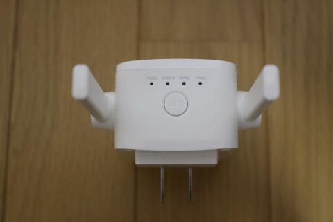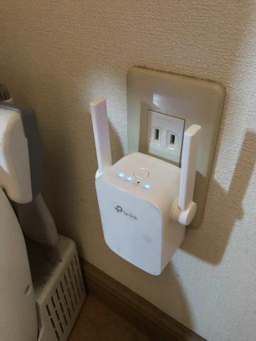 2階と1階の中間でコンセントがあって設置しやすいということで、1階の廊下に設置しました。ランプは青に点灯しているので、回線品質は良好と思います。